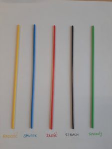 Gracz wyciągając patyczek nazywa kolor i powiązaną z nim emocję, po czym opisuje sytuację, w której doświadczył takiego uczucia (np. czerwony-złość à zezłościłem się kiedy siostra wzięła bez pytania moje lego).